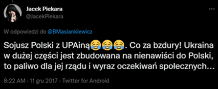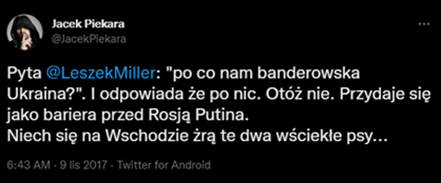 Może zacznijmy od prostego przykładu. Oto jeden z celebrytów, polski pisarz fantasy, dziennikarz i redaktor czasopism o grach komputerowych, prawnik i psycholog, niejaki Jacek Piekara. Będę uczciwy i przyznam, że lubiłem go. Kaczyńskiego zresztą też! No i trafiam na takie „białe kruki” (z 2017 roku):