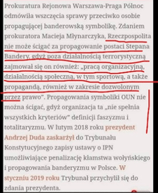 Przestudiujmy teraz ciekawszy przypadek. Nasz najukochańszy prezydent odezwał się w swoim ulubionym, nadętym stylu: Będziemy wspierać Ukrainę we wszystkich działaniach prawnych i dyplomatycznych, których celem będzie ukaranie sprawców zbrodni popełnianych obecnie przez Rosjan. Zrobimy wszystko, aby ofiary ukraińskie nie musiały czekać na sprawiedliwość aż 80 lat! https://wpolityce.pl/polityka/593877-prezydent-chce-rozliczenia-katynia-przed-trybunalami. Ta wypowiedź brzmi dość niepokojąco i niektórzy słusznie podejrzewają, że w całym tekście nie ma nawet słowa o Wołyniu! Dlaczegóż to, czy ktoś pamięta? Popatrzmy na ten fragment pewnego ciekawego artykułu: https://wyborcza.pl/7,75398, 23027264,andrzej-duda-skierowal-ustawe-o-ipn-do-trybunalu-konstytucyjnego.html. Szerzej pisze o tym w swoim felietonie Katarzyna Treter_Sierpińska: https://wprawo.pl/katarzyna-ts-negowanie-rzezi-wolynskiej-polska-racja-stanu/.