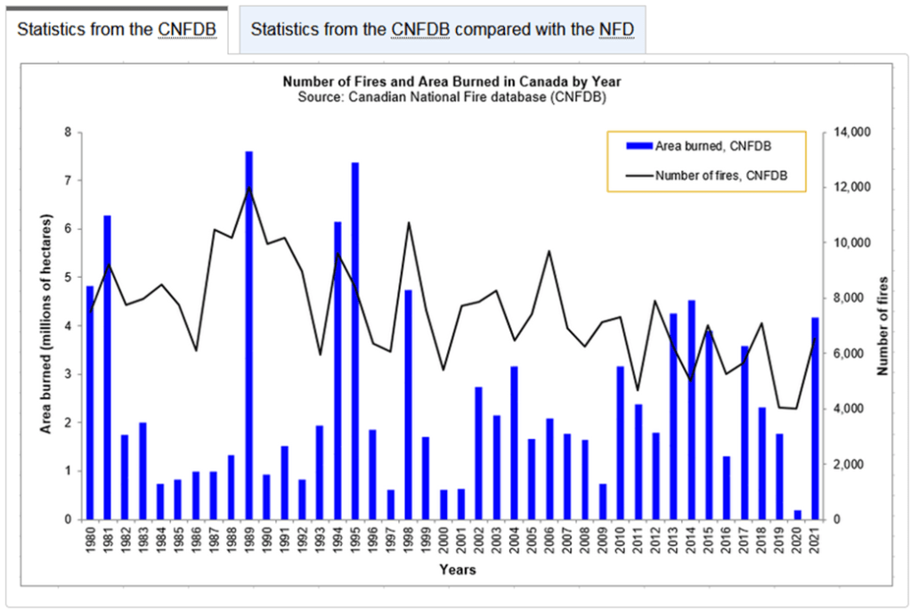 A komentarze wręcz kłamliwe. Oto jak „fachowcy” tłumaczą sytuację w Kanadzie: W całej Kanadzie jest 426 aktywnych pożarów – podawał w niedzielę 11 czerwca francuski dziennik „Ouest France”. Według Kanadyjskiego Międzyagencyjnego Centrum Pożarów Lasów (CIFFC) w tym roku doszło już do 2 372 pożarów, które pochłonęły 4,3 miliony hektarów (czyli 43 tys. kilometrów kwadratowych, tyle liczy powierzchnia Danii). To też ok. 15 razy więcej niż wynosiła średnia roczna w ciągu ostatniej dekady. https://konkret24.tvn24.pl/swiat/pozary-w-kanadzie-tak-sie-wywoluje-pozary-nie-tak-sie-je-gasi-wyjasniamy-7171457. Spójrzcie zatem uważnie jeszcze raz na powyższy wykres!