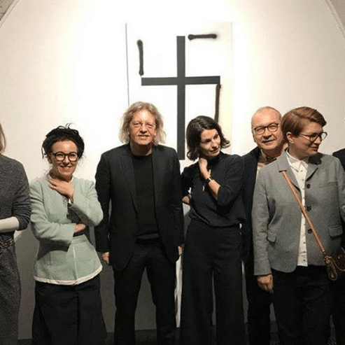 Zadowolone elyty (z noblystką) pod sprofanowanym krzyżem.