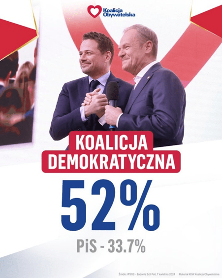 Najbardziej zadowolona z wyborów jest „Koalicja Demokratyczna”, która uzyskała 52% poparcia. Co prawda taka formacja nie istnieje, ale wnioskuję z materiałów propagandowych, że na jej czele stoją dwaj Panowie TT, obydwaj należący do PO.
